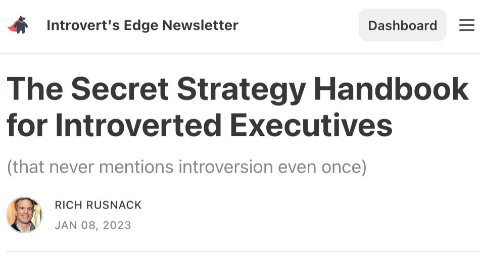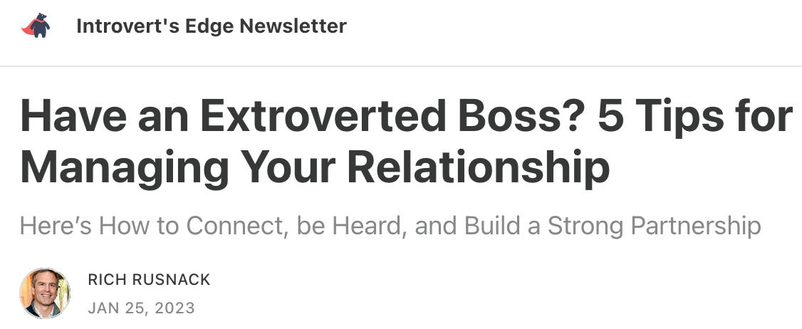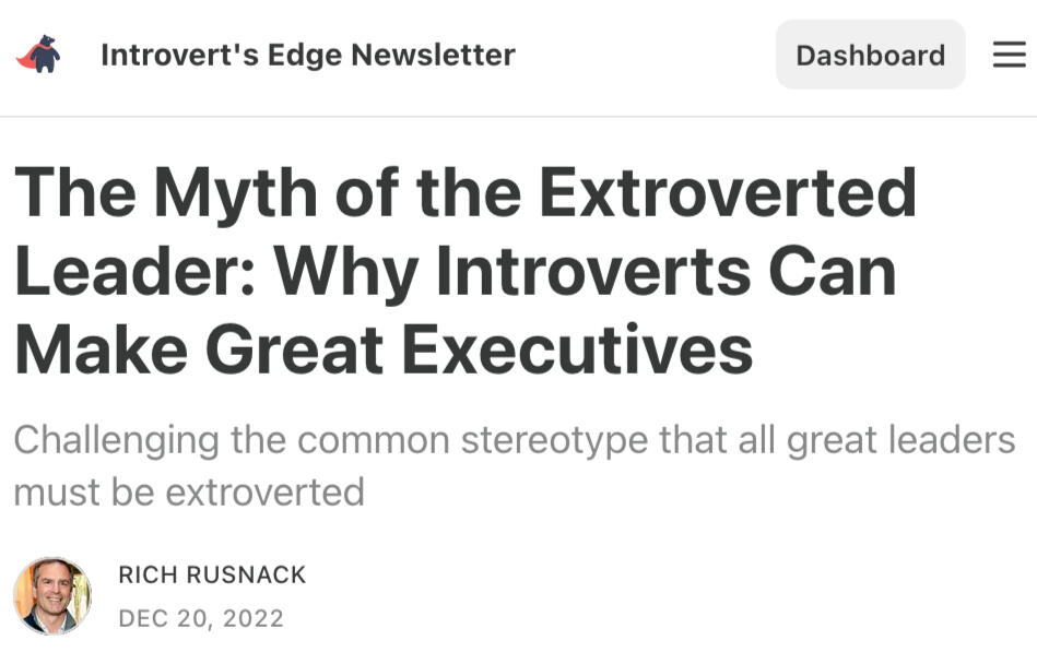👋 Hey, Rich here. This week I’m diving into leadership of introverted teams. I was inspired by the story of a senior leader who recently decided that brainstorming sessions, where innovation was the goal, would best be made up of teams of extroverts….and introverts should be excluded. Whoa there 🤨 buddy! Those are fighting words. And, by the way, also a recipe for missing out on 50% of the great ideas in the room.